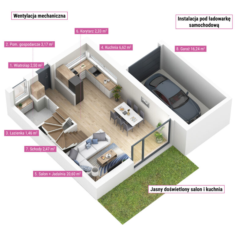 | 0.4 | Salon + Jadalnia | 22.83 m2 |